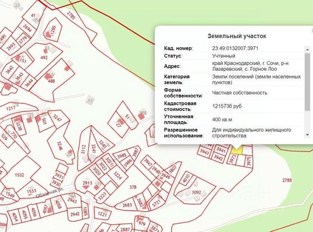 Продам участок : Адрес : Краснодарский край, городской округ город-курорт Сочи, Лазаревский район, село Горное Лоо, ул. Аштаракская, з/у 40 А/1 Общая площадь - 423 кв.м. ; Протяжённость границ - ширина / 19*19 /, длина / 20*20 / ; Официальный адрес участка - имеется ; Межевой план - сделан ; Геология и геодезия - сделаны ; Крупная растительность на участке - не имеется ; Обзорность участка - лакшери ; Электричество на участке - имеется / трёхфазный счётчик от ТСН Энерго / Вода на участке - / в январе-феврале 2026 года проводят централизованное водоснабжение от Лазаревского водоканала / ; Подземные городские коммуникации - сквозь участок не проходят ; Специальные зоны - участок не расположен в их пределах ; Подъезд к участку - имеется / в т.ч. для крупногабаритного транспорта / ; Заезд на участок - имеется / для всех видов транспорта / ; Близость к лесной природе - 100 м ; Удалённость от моря - 2.5 км по автотрассе ; Участок ЧИСТЫЙ : 1. Приобретён по Договору купли-продажи ; 2. Продаётся от собственника ; 3. Не находится в залоге, не выставлен на аукцион и т.п. ; 4. Права на участок - 1 собственник ; 5. При продаже : а) Всё будет проходить через "безопасная сделка" через Сбербанк ; б) При обязательной проверке и удостоверении нотариуса ; ПЕРСПЕКТИВЫ : 1. Статус участка - ИЖС / можно строить "Гостиный дом" , т.е. вести легальную коммерцию на участке согласно новому Закону "О гостевых домах" / ; 2. Можно построить загородный дом 10*10 и высотой до 3-х метров / при сделке подарим проект готового дома на участке , т.к. он уже имеется / ; 3. По ул. Аштаракской будет проводится в 2026 году газоснабжение / которое уже начали проводить в Горном Лоо и планируют в этом году его расширить и на данную улицу / ; 4. Участок расположен : всего в 1.5 км от линии прохождения в ближайшем будущем - планируемой скоростной автотрассы "Джубга-Сочи" / строительство данной автотрассы уже начали в 2025 году - это участок 1 очереди ( "Обход Адлера ) , который планируют завершить в 2027 году. И с 2027 года - начнётся строительство 2-го участка данной автотрассы - / Дагомыс-Лоо-Головинка / . 2-й участок планируется построить к 2030 году ; Т.е. от участка прямо в центр Сочи на автомобиле можно попасть будет - всего за 15-20 минут ; 5. Участок расположен - а) В 50 м от смотровой площадки с видом на море и вершины 2 гор под названием : "2 горы и море" ; б) В 200 м от смотровой площадки "Лоо" ; в) В 1.5 км от водопада под названием : "Райское наслаждение" ; г) В 2.5 км от водопада под названием : "Скала-водоскат" ; д) В непосредственной близости от инфраструктуры : от магазинов, садика, школы, рынка ; 6. В соседней Хобзе есть прекрасная возможность приобрести домашние продукты : любые - от молочки до мясных ! 7. Участок расположен в экологически чистой зоне - вдали от любых пром. объектов ; При серъёзном разговоре - реальный торг уместен ;