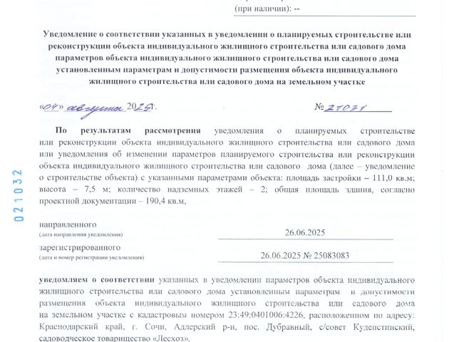 23:49:0401006:4226. п. Каштаны, вид на горы, 10 мин. на машине от Хосты. Плодоносный сад, участок ровный. Поселок активно застраивается, развивается инфраструктура. Получено Уведомление о соответствии планируемого строительства, 190 кв.м, 2 эт. Геология. Документы готовы к продаже.