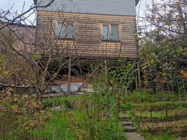 Участок: Угловой, с фасадами 34 и 32 метра. Более половины — ровная площадка, остальная часть террасирована под склон. На террасах разбит плодоносящий сад: мандарины, хурма, фейхоа, киви, виноград, яблони, сливы, груши.