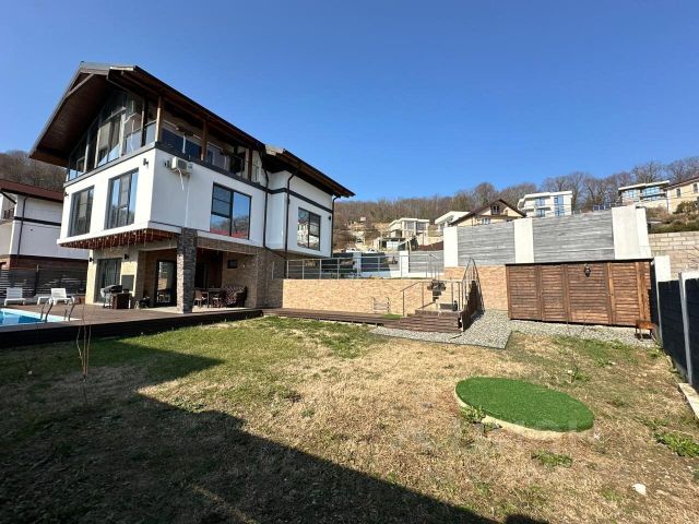 Продаётся комфортабельный дом площадью 390 квадратных метров в селе Каштаны. Здание выполнено из монолитного материала и состоит из трёх этажей и одного подземного помещения (подвала). Высота потолков составляет 2,8 - 4 метра. Дом оснащён всем необходимым для комфортного проживания: кухонным гарнитуром, мебелью, холодильником, телевизором, кондиционерами в каждой спальне, посудомоечной машиной, двумя стиральными машинами, электрической плитой, духовкой Bork и тёплыми полами на всех этажах. Установлены два котла: электрический и газовый. Канализация - септик, электричество - 30 киловатт, газ - централизованный, водоснабжение - скважина. Имеется система видеонаблюдения, асфальтированная дорога до участка и парковка на три автомобиля. Планировка включает первый этаж с совмещённой кухней-гостиной и подсобным помещением, второй этаж с тремя спальнями и собственными санузлами с душевыми, техническую комнату, третий этаж с тремя спальнями, кабинетами и тремя балконами. Подвал можно использовать по собственному усмотрению, например, оборудовать пространство для фитнеса. Земельный участок ИЖС, принадлежит собственнику и составляет 8соток, ещё 7 соток прилегают со стороны леса. До благоустроенного пляжа в Хосте можно доехать за 10 минут на автомобиле. До Аэропорта 20-30 минут на автомобиле В районе хорошо развита инфраструктура: есть школы, магазины, рестораны и поликлиника. Рядом находятся Никольский храм, конный клуб Гусар, питомник декоративных растений. На территории расположены баня на дровах с купелью и зоной отдыха, бассейн с подогревом и системой очистки, летняя кухня с мангальной зоной и домик для персонала. Номер в базе: J26237 Купить загородную недвижимость на улице Мичурина в селе Каштаны.