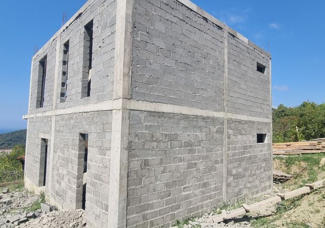 Центр Лоо. Недостроенный жилой дом, 117 кв. м. Первый этаж возведен. В одной части планировалось сделать 4 номера под сдачу, во второй жилое. Второй этаж зеркально. Коммуникации: свет и вода по меже участка. Земельный участок 5 соток, с хорошим подъездом. Дом оформлен, как объект незавершенного строительства. С участка шикарный вид на море. Развитая инфраструктура: школа, магазины, супермаркеты, остановка, ж/д станция и др. в шаговой доступности. ВНИМАНИЕ! Получено разрешение на реконструкцию! Срок действия разрешения - до 2033 года До моря 700 м.