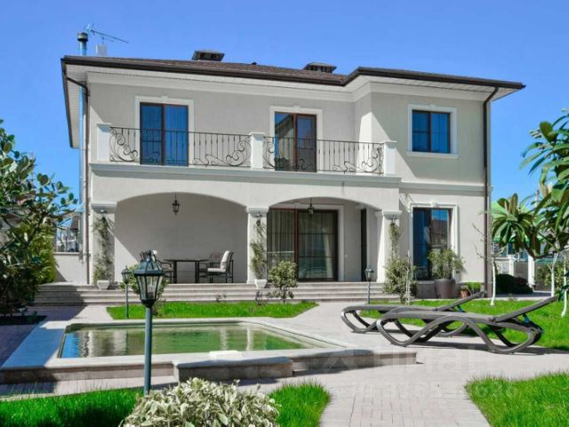 Участок включает гараж для нескольких машин, беседку и террасы для отдыха, мангальную, душевую, баньку, есть открытый бассейн. По всей территории выполнено озеленение с автоматическим поливом, ночная подсветка клумб и фасада.
