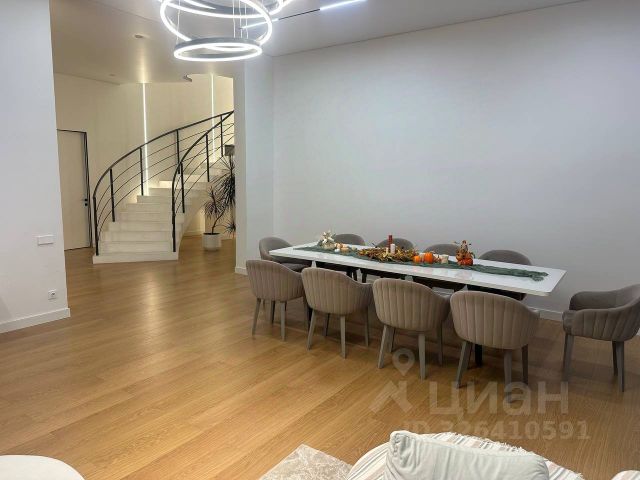На 1 этаже располагается прихожая со встроенным шкафом - купе, просторная гостиная, отдельная столовая с кухонным островом, кухня, оборудованная всем необходимым: кухонный гарнитур, посудомоечная машина "Hair", плита "Hair", холодильник и морозильник "Liebherr", кондиционер и 2 раковины. Здесь же расположен санузел со стиральной машиной и уютная спальня со своим санузлом, кондиционер, плазма ТВ, кровать с ортопедическим матрасом и вместительной гардеробной.