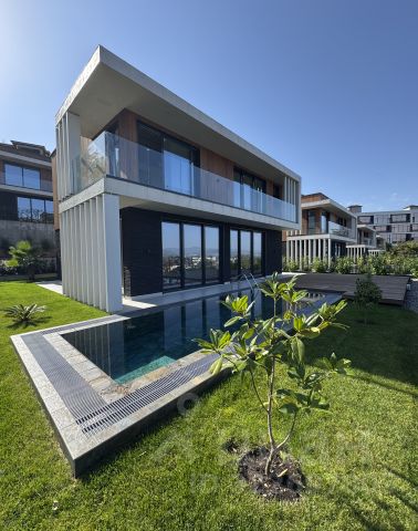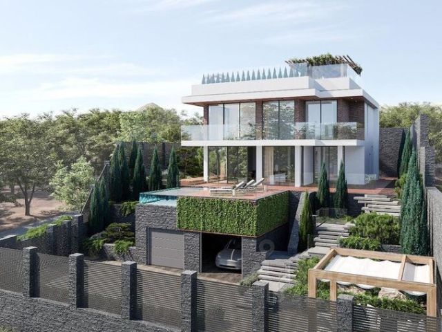 Участок 7 соток организован каскадом и работает как собственный курорт: на первом уровне - крытая парковка на 3 автомобиля и эффектная входная группа; на втором - бассейн с патио для дневного лаунжа и вечерних коктейлей; на третьем - сама вилла. Авторское озеленение с системой автополива создаёт приватные зелёные комнаты и поддерживает курортную эстетику круглый год.