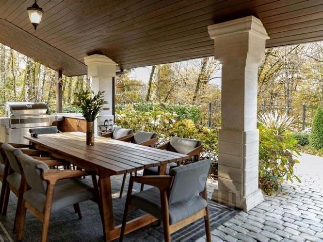 Участок 7 соток организован каскадом и работает как собственный курорт: на первом уровне - крытая парковка на 3 автомобиля и эффектная входная группа; на втором - бассейн с патио для дневного лаунжа и вечерних коктейлей; на третьем - сама вилла. Авторское озеленение с системой автополива создаёт приватные зелёные комнаты и поддерживает курортную эстетику круглый год.