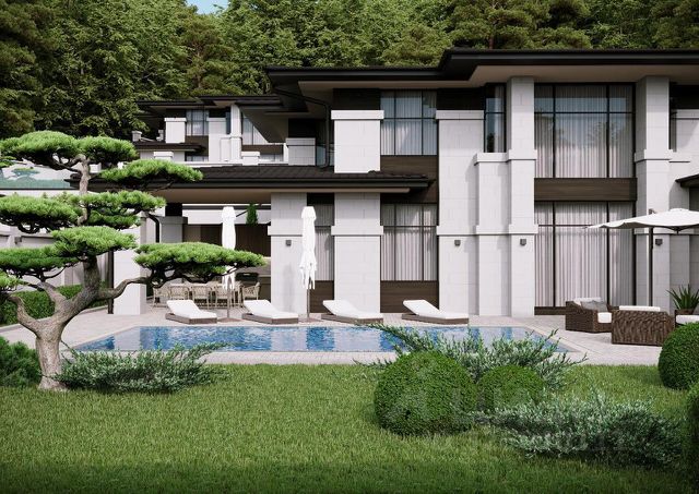 2. В каждой вилле 6 спален, 5 гостиных, 6 кухонь, 4 столовые, также имеются: прачечная, кладовые, турецкая баня, сауна, бассейн, зимний сад, библиотека с камином,