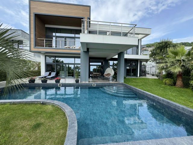 Средиземноморская вилла с панорамным видом на море Представленная вниманию вилла находится в престижном жилом районе, который отличается очень хорошей экологией и отличной транспортной доступностью. Чистый воздух, зелень круглый год, прекрасный вид на море и на горную панораму самые очевидные преимущества объекта. Приглашаем вас на виртуальную экскурсию по особняку, которая позволит вам оценить его достоинства. Информация об объекте: важные параметры Вилла была построена в 2015 году на большом земельном участке, площадь которого составляет 30 соток. Площадь самого дома 650 квадратных метров. Авторы проекта заказчик с командой архитекторов и дизайнеров, создали действительно уникальный объект рынка недвижимости, который позволяет насладиться абсолютно всеми благами курортного города. Несмотря на факт большой площади, большое внимание было уделено вопросу планировки. Внутреннее пространство спланировано очень гармонично и удобно: Шесть изолированных спален; Пять санузлов; Огромная кухня-гостиная; Свой собственный спортзал. Отделка особняка выполнена с использованием дорогостоящих материалов, что только подчеркивает престижный статус предложения, его предназначение для самой искушенной и требовательной публики. Например, обеденный стол, расположенный в гостиной части квартиры, выполнен из агата с обсидианом, лестница отделана мрамором производства Италии. Усыновлена мягкая мебель от ведущих европейски производителей, бытовая техника от ведущих мировых брендов. Территория На прилегающей к вилле территории выполнен невероятно красивый ландшафтный дизайн. Непосредственно перед домом располагается большой бассейн с противотоком и джакузи. Благоустроены зоны для отдыха с ротанговой мебелью, барбекю и русской печью. Отдельно домик для проживания обслуживающего персонала, парковочное пространство для трёх автомобилей. Установлены камеры видеонаблюдения.