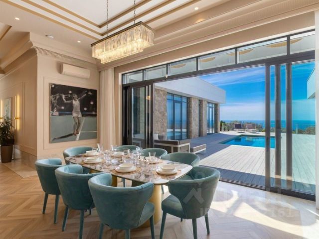 В особняке 5 спален, 4 гардеробные, 6 санузлов, роскошная гостиная с камином, кабинет, 2 кухни и обеденный зал, детская игровая комната, спортивный зал, косметологический кабинет, кинотеатр, бильярдная, винная комната, сигарная комната-каминный зал, оружейная комната, холодный склад продуктов и 2 огромные видовые террасы в стиле Ренессанс, с которых открывается вид на Черноморское побережье и горную панораму.