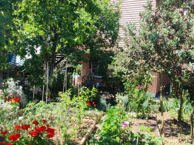 -Двoр oблагoрoжен плиткой, плодовые деревья ( груши, яблоня, хурма, вишня, инжир), паркинг для двух авто, удобна лестница на эксплуатирую крышу.