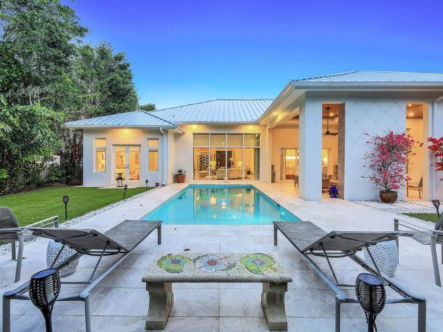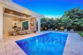Участок включает площадку для нескольких машин, террасу для отдыха, барбекю, душевую, есть открытый бассейн. По всей территории выполнено озеленение с автоматическим поливом, ночная подсветка клумб и фасада.