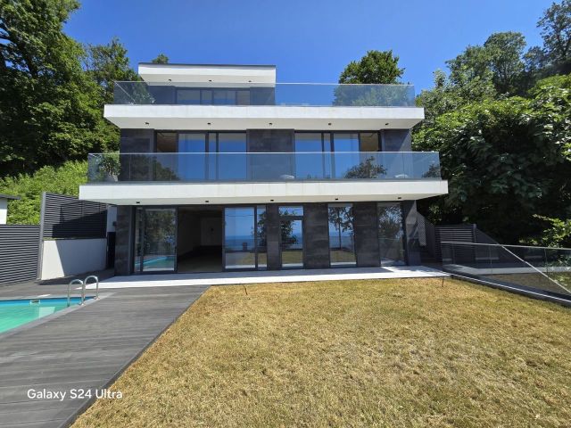 На первом этаже четыре жилых комнаты, санузел с ванной, санузел гостевой, большая кухня- гостинная с видом на море. В гостиной сплит, Высота потолков в комнатах 2,8. В цокольном помещении баня с душем и комнатой отдыха( в комнате отдыха мини-кухня, чайник) , а также отдельная комната для гостей с санузлом, и с кондиционером, со спутниковым ТВ( МТС тарелка) . В комнате большое окно с видом на сад.