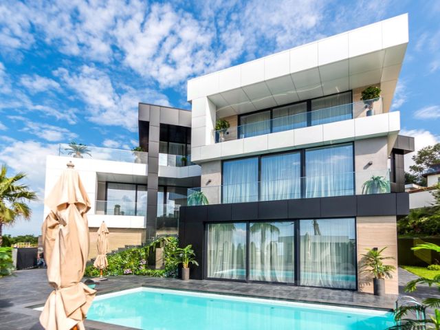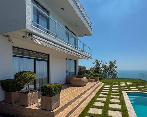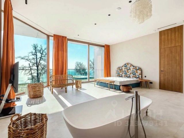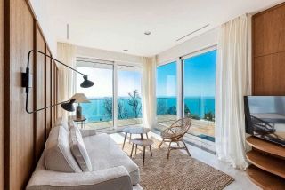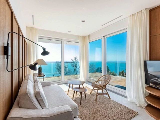 Площадь дома 300 кв.м. Высота потолков 3,3 м. Витражное остекление в пол по всему периметру. Потрясающие видовые характеристики на море, горы, национальный парк практически из каждой комнаты.