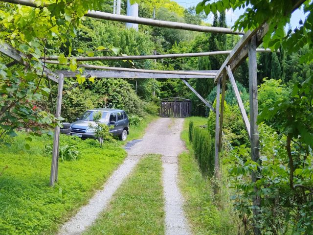 Асфальтовая дорога проходит мимо ворот участка. В пяти минутах ходьбы - автобусная остановка. Коммуникации есть, участок разработан, долгое время использовался для проживания. Можно использовать как для проживания, так и для "гостевых домов" - в этом районе стабильная заполняемость в горнолыжный сезон.