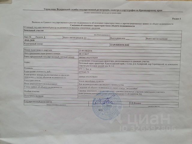 Продаю земельный участок Адлерский район Кадастр - 23:49:0000000:9102 С видом на олимпийский парк