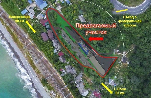 Участок расположен в живописном тихом месте, окруженном густой растительностью природного заповедника, в стороне от поселка и шума отдыхающих, в непосредственной близости к побережью. От участка около 10-ти минут ходьбы до самого комфортабельного пляжа в Лазаревском - "Одиссей".