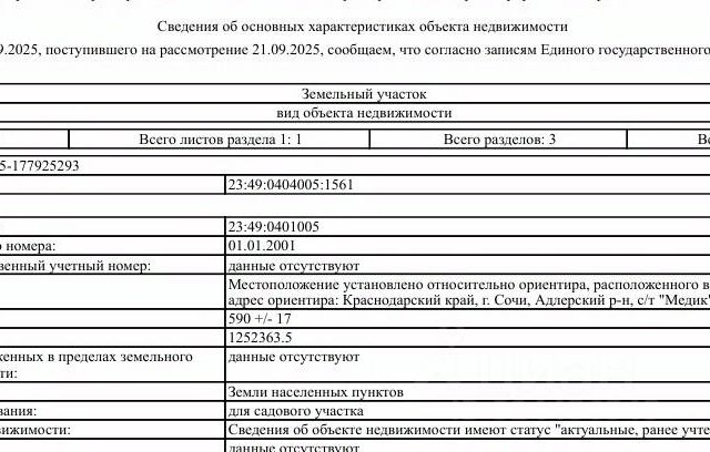 Село Липники, 7 соток. Тихий посёлок в 20 минутах езды от пляжа Имеретинский. Участок правильной формы, с небольшим уклоном, ливневого русла на участке нет. Зона застройки Ж1 (застройка индивидуальными жилыми домами высотой до 12м). Согласование с аэропортом на строительство не нужно. Электричество по границе, выделенная мощность 15кВт. Имеется возможность подключения водоснабжения (Водоканал Сочи). В посёлке асфальтированная дорога, подъезд к участку щебень (около 100м). Вода у соседей на глубине 70м. Автобусная остановка в 100м. На участке поросль, несколько плодовых деревьев. Градостроительный план имеется. с участком отдаю две доли общественных мест пользования БЕСПЛАТНО 1/6 от 9 соток и 1/6 от 1,1 сотки - долевая собственность с соседями. Можно использовать под гостевую парковку. Срочная продажа в связи с отъездом. Разумный торг уместен. Звонить строго с 10 до 19.