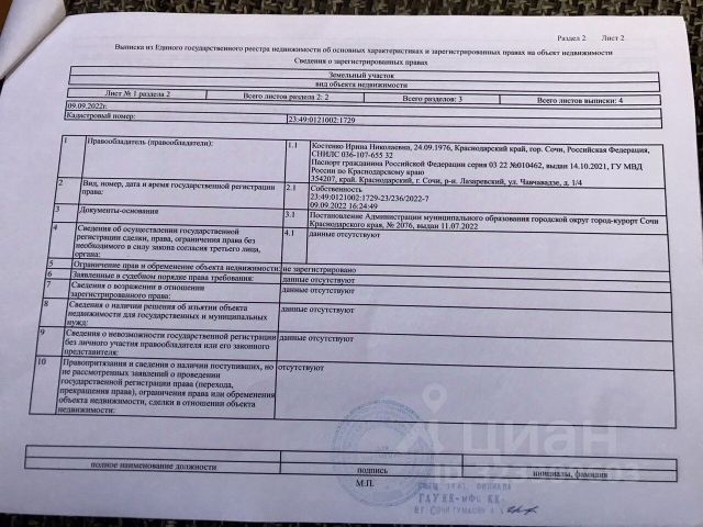 Здравствуйте! Предлагаю уступку аренды земельного участка, 15 соток, СНТ, в аренде до 1 октября 2058 года. 4 км до моря, до центра Сочи 25 км. Ближайший населённый пункт — Нижняя Хобза. Электричество подведено, всё готово к заключению договора с Россети Кубань. Хорошо работает мобильная связь, быстрый интернет 4G. Закрытая охраняемая благоустроенная территория, въезд через ворота (открываются через мобильное приложение). Дорога до ворот асфальтированная, после — качественная щебеночная, комфортный проезд в любое время года. Участок прямоугольной формы, ровный, без строений, есть кабина Газ 66 для хранения инструментов. Сразу за участком чистая горная река, а за ней лес. Посажены хурма, персик, виноград, фейхоа и многое другое, земля плодородная, рядом расположены теплицы садового товарищества Солнечные сады Сочи, где круглый год выращивают экологически чистые овощи/фрукты/ягоды, доступные для приобретения по низким ценам. Соседи достойные, адекватные люди, отношения добрососедские. Документы готовы к сделке, отсутствуют обременения и долги, пожалуйста, звоните и приезжайте на просмотр.