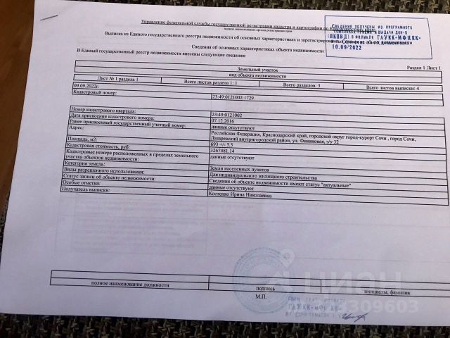 Кадастровый номер: 23:49:0136003:473 Продажа в связи с переездом!! Так же продаётся дом на Мамайском перевале! Подходит ипотека под строительство дома!!! Продам участок 10 соток, размер 20*60 метров. Статус земли поселений. Назначение: для коллективного садовотства с правом жилищного строительства!!! Все документы на участок есть. Межевание и прочее всё есть! Оформлен до 2014 года! Второй участок 9 соток но на него есть документы только на садовотство. Этот участок можно оформить на нормальные документы. Цена указана за 2 участка!!! Данный участок находится за больницей N5. Участок практически ровный. Находится в уединенном месте, очень красивая природа, есть лес и тропы для прогулок, рядом находится очень красивый сад Персиков и Хурмы. На данный момент участок очищен от зарослей, и сделан заезд с планировкой, наткнулись на оргилит. До участка идёт идеальная дорога можно заехать на любой машине. Участок освещается солнцем целый день! Заезд на участок можно сделать с двух сторон. По сетям: труба с водой проходит на расстоянии 20 метров от участка. Электричество рядом, есть возможность подключить. По инфраструктуре в шаговой доступности есть гимназия 76, детский сад 126, ярмарка, магазины пятёрочка и магнит (Армавирская 139, пешком 11 минут), а также больница и церковь "Храм Иконы Богоматери" и всё это в шаговой доступности. А также конечно пляж Дагомыс и Ж/Д вокзал до которого пешим шагом 30 минут. Соседи уже строятся. Есть град план на данный участок! По сделке, вся сумма в договоре. Показ возможен по предварительному согласованию. На участке растут: мандарины, яблоки, груши, хурма, слива, инжир, фундук, фейхоа, кизил.