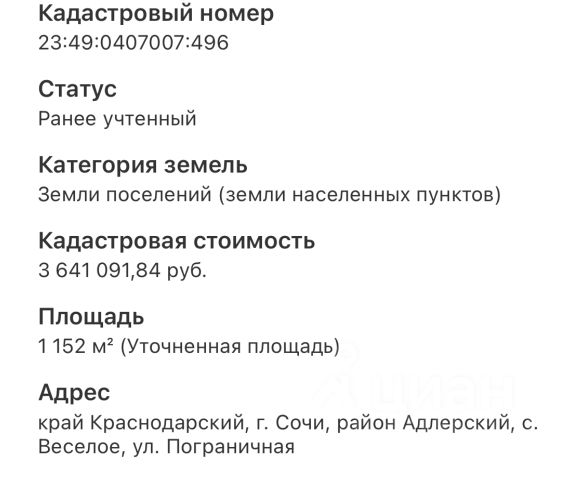 Продаётся земельный участок в живописном и экологически чистом районе города Сочи. Участок площадью 5,5 соток предназначен для индивидуального жилищного строительства. На территории участка уже имеется небольшой деревянный дом для временного проживания. Также на участке есть все необходимые коммуникации: свет, скважина с родниковой водой, канализация (септик на 4-5 кубов). Газовая труба проходит по границе участка. Удобный подъезд к участку обеспечен асфальтированной дорогой, что значительно облегчает его застройку. Участок находится в жилой зоне с развитой инфраструктурой. В пешей доступности расположены школа и детский сад. До Черного моря всего 10-15 минут на машине, а горнолыжный комплекс "Красная поляна" находится в 50-60 минутах езды. Город Сочи можно достичь за 40 минут, прокатившись вдоль Черноморского побережья. Есть разрешение на строительство. Этот земельный участок - отличное место для строительства вашего индивидуального жилища в красивом и удобном районе Сочи. Не упустите шанс!!