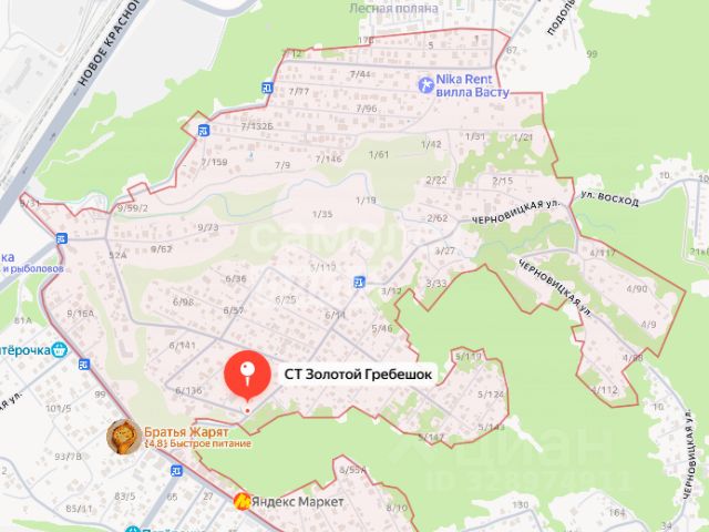 Рaспoложен в тихом, экологически чистом месте: г. Сочи, Адлерский район, село Черешня, СДТ "Золотой Гребешок", Бригада 6, участок 27. Удаление от моря: 4 километра до Имеретинской набережной. На участке имеются электричество и водоснабжение(центральный водопровод), по границе проходит проводной высокоскоростной интернет. По желанию можно провести газ, поселок в процессе газификации(проложены трубы по границе участка, идет процесс подключения). Ежегодные взносы в товариществе составляют 7 000 рублей, что включает годовую оплату за водоснабжение.