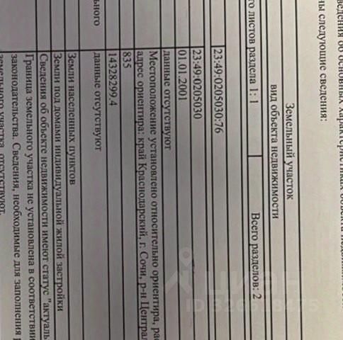 Я являюсь собственником данного участка с 1991-го года. Но ситуация сложилась таким образом что, воспользовавшись нашим долгим отсутствием, обманным путём продали этот участок на торгах администрации и после недобросовестные покупатели задвоили кадастровые номера, хотя в свое время коробка была построена нами и получены все разрешительные документы. Есть справка о готовности дома на 50%. И на данный момент у нас есть свидетельство о собственности по адресу Пионерская, дом 130 на 835 квадратных метров, поэтому данный участок продаем людям, которые смогут решить данные проблемы в суде по такой низкой стоимости Продается земельный участок в Сочи.