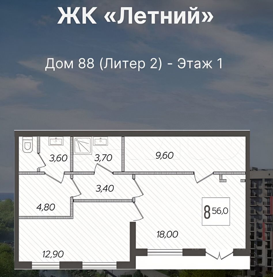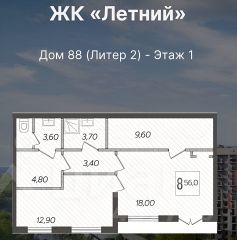 Сдается помещение 56м² в новом жк Летний, более 2000 квартир. В ЖК очень мало коммерческих помещений, то есть много людей и мало конкуренции.