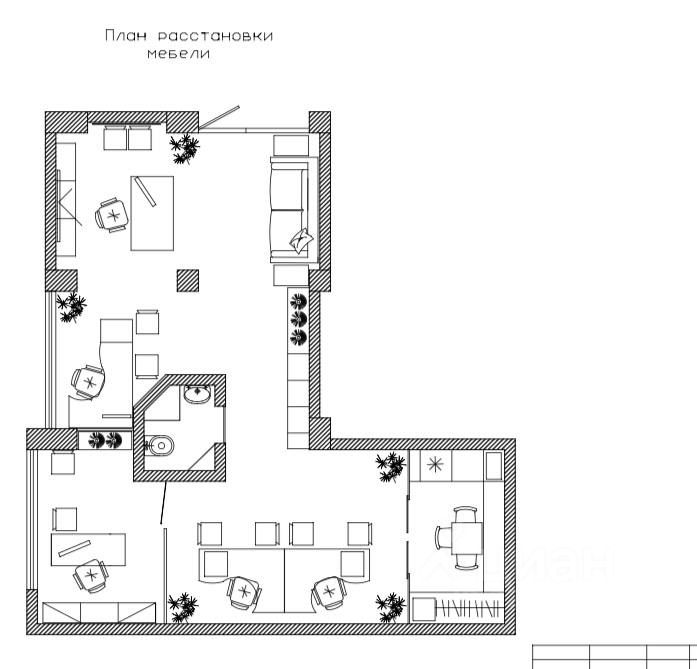 Офис оснащён необходимой мебелью.