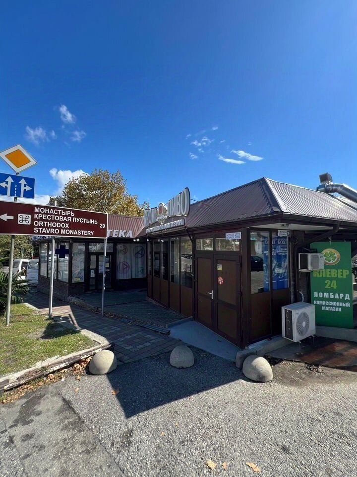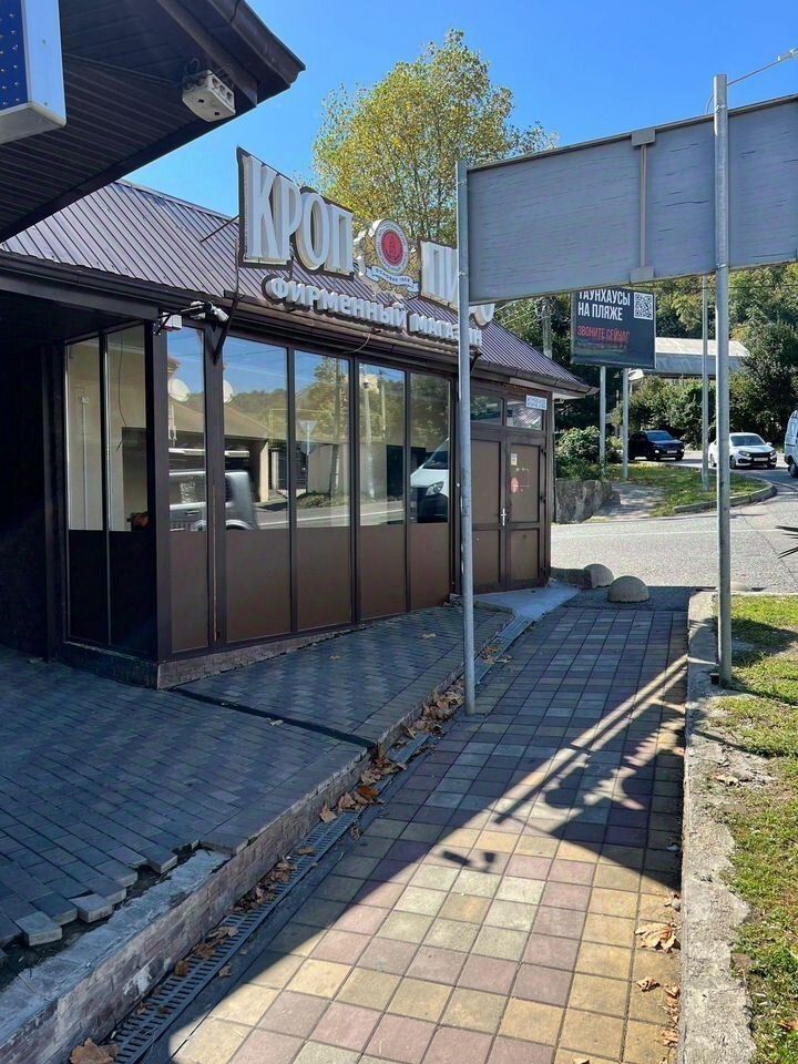 Центральный дагомысский пятачок, остановка, проход к морю очень людное место. Между аптекой, WB и ломбардом. Вход со стороны центральной трассы. Можно расширить входную группу и разместить вывеску и рекламу. Есть мокрая точка и санузел.