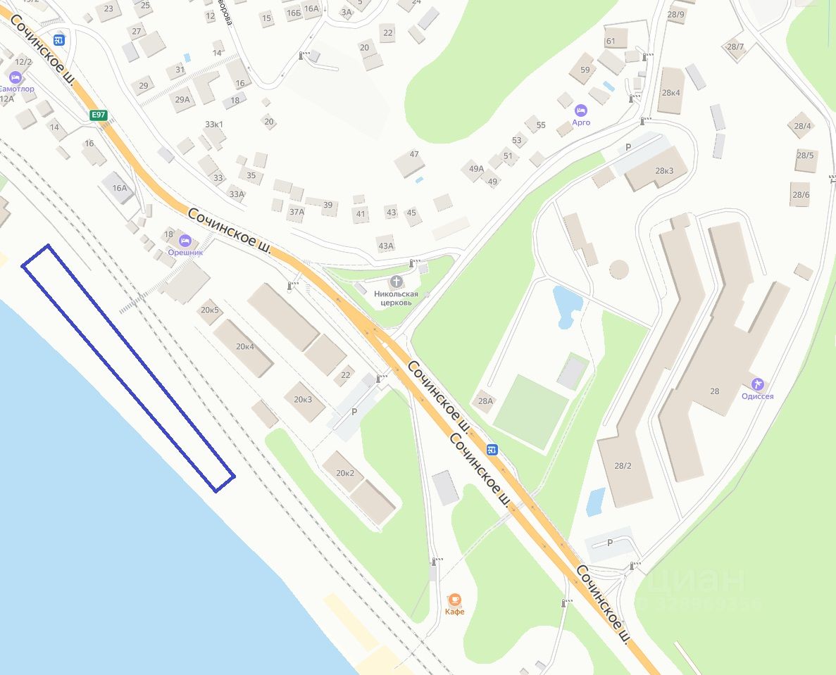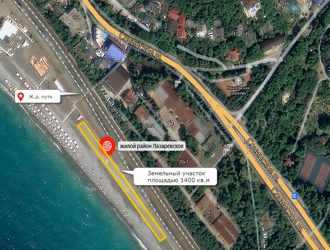 Участок правильной формы. Инженерные коммуникации отсутствуют. Земельный участок расположен в курортной зоне Черноморского побережья на пляже жилого района Лазаревское.