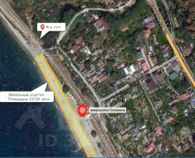 Земельный участок расположен в курортной зоне Черноморского побережья на пляже микрорайона Головинка в окружении жилой застройки. Развитая инфраструктура. Хороший пешеходный трафик. Наличие парковочных мест на прилегающей территории. В шаговой доступности магазины, гостиницы, остановка общественного транспорта и железнодорожная станция Головинка.