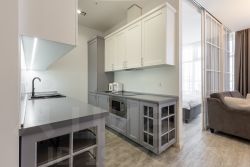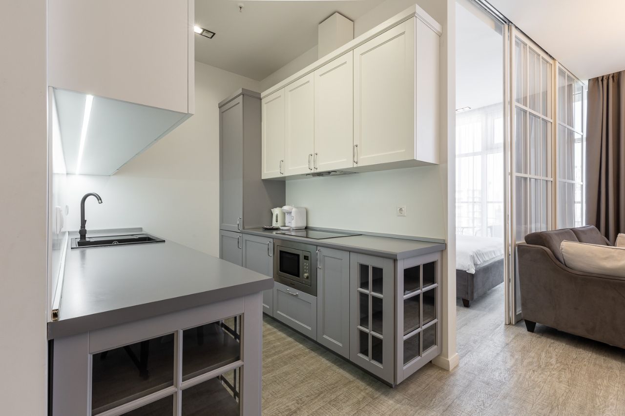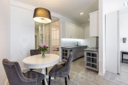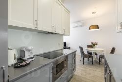 Укомплектована всей необходимой мебелью и техникой :микроволновая печь,посудомоечная машина ,капсульная кофемашина , встроенная кухонная бытовая техника, кондиционер, стиральная машина, WiFi.