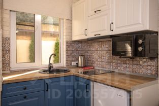Апартаменты вмещают 4 человека: изолированная спальня с двуспальной кроватью и кухня-гостиная, с раскладным диваном.