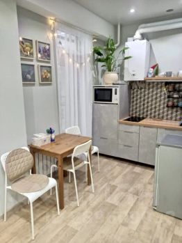Квартира оборудованная кухней со всей необходимой посудой, микроволновая печь, чайник, плита.