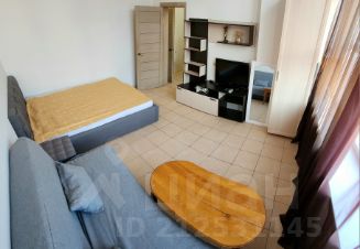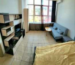Студийная комната с кухней, изолированная спальня. Из спальных мест-двуспальная кровать, 2 двуспальных дивана. В квартире все удобства, панорамное остекление, теплые полы. вся необходимая бытовая техника.