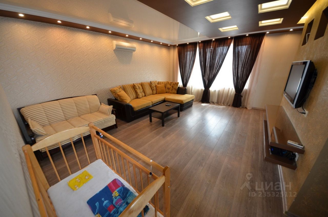 Общая площадь квартиры составляет 105 кв. м. Рассчитана на проживание до 5-ти человек. При необходимости можем предоставить детскую кроватку, коляску, стульчик для кормления, евро раскладушку.