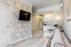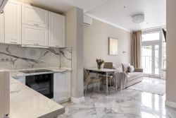 Расстояние до центральной набережной всего 300 метров, до остановки общественного транспорта 150 м, до Магнита 600м, до Перекрестка 650м (1 остановка) и в пределах 5 минут ходьбы от морского порта.