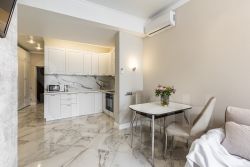 В апартаменте есть все необходимое для проживания :духовой шкаф , варочная поверхность ,холодильник , 2 кондиционера , стиральная машина, кровать с ортопедическим матрасом . Изолированная спальня и совмещённая кухня-гостиная .