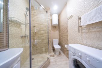 Качественное сантехническое оборудование, стиральная машина, плюс индивидуальный гигиенический набор для каждого гостя .