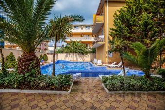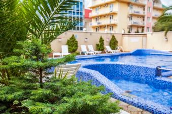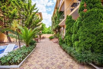 На территории есть б е с п л а т н ы й подогреваемый бассейн с шезлонгами для взрослых и гостей помладше!
