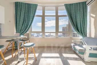 Видовая квартира-студия в новом доме, фактически над центром города. Окна 7 этажа почти на высоте птичьего палета. Потрясающий вид на море и город. Все в шаговой доступности.