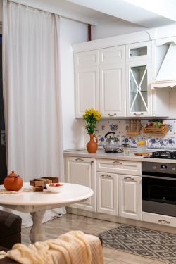 Полностью оборудованная кухня (духовой шкаф, варочная панель, вытяжка, посудомоечная машина)