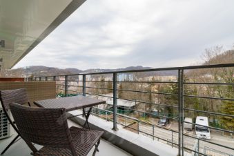 Улучшенные апартаменты студия, выполненные в дизайнерском стиле. Идеальный вариант для размещения до 3-х гостей. Для удобства гостей апартаменты оснащены итальянской двуспальной раскладывающейся кроватью и одноместным диваном-кроватью, необходимой мебелью и бытовой техникой. Общая площадь 40 кв.м. Апартаменты расположены на 2-м этаже с видом на горы, которым вы можете любоваться с собственной террасы. Терраса оснащена набором плетенной мебели. Апартаменты имеют панорамное витражное остекление и москитные сетки.