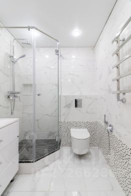 Собственная ванная комната оснащена душевой кабиной, большим зеркалом, феном, полотенцесушителем и автономной бойлерной системой для бесперебойной подачи горячей воды.