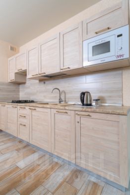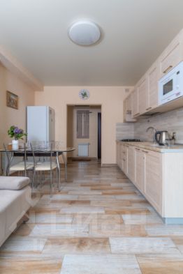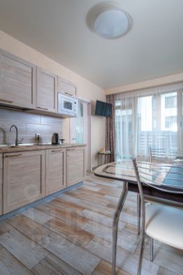 Уютная квартира представляет собой идеальное сочетание современного стиля и комфорта. В светлой кухне, отделанной в теплых бежевых тонах, имеются все необходимые приборы и техника. Просторная обеденная зона с большим столом и большие окна наполняют пространство естественным светом и создают атмосферу легкости.