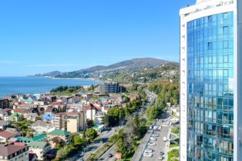 уютная, светлая и комфортабельная 2-хкомн квартира с шикарным видом на море . Общая площадь 51 кв. м. спальня, зал-гостиная ,кухня Санузел совмещённый. 4 спальных мест - одна двуспальная кровать, двуспальный диван-кровать. Из удобств: теплые полы, кондиционер, огромный телевизор, новая мебель, посуда, оборудованная кухня, холодильник, микроволновка, электрочайник, утюг, гладильная доска, фен, белье, полотенца, кабельное телевидение, Wi-Fi. Во дворе предусмотрены детские и спортивные площадки, мангальная зона.В 50 метрах от дома расположен "Перекресток".