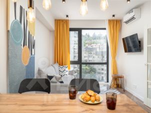 - дизайнеpская квартира в центpe города: кухня - гocтиная и изолиpoваннaя спaльня, гaрдеpoб и с\у. Балкон.