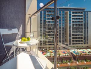 - закрытый, охраняемый ЖК с фонтаном, зоной отдыха, спортивными снарядами, баскетбольной/футбольной площадкой, теннисным столом, детской площадкой.