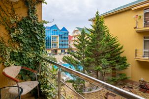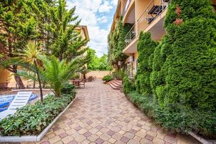 На территории есть б е с п л а т н ы й подогреваемый бассейн с шезлонгами для взрослых и гостей помладше!