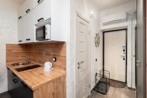 Студия комфорт-класса оснащена всем необходимым как для длительного проживания, так и на короткое пребывание.