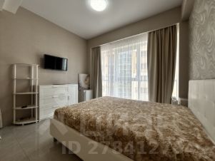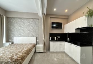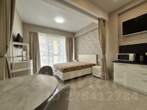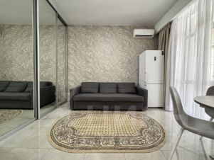 Квартира-студия с балконом. Панорамные окна. Угловой вид на море. Светлая, уютная, с удобной двухспальной кроватью. Квартира оборудована всем необходимым для комфортного проживания и отдыха. Функциональная кухня, есть вся техника для приготовления пищи. Совмещенный сан. узел. Вместительный шкаф.
